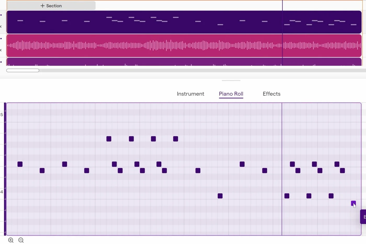 Draw the first notes where you would like. Be sure to check with the playback to make sure they sound good. Add in more notes using repetition and variation, making sure the notes are singeable and in key.